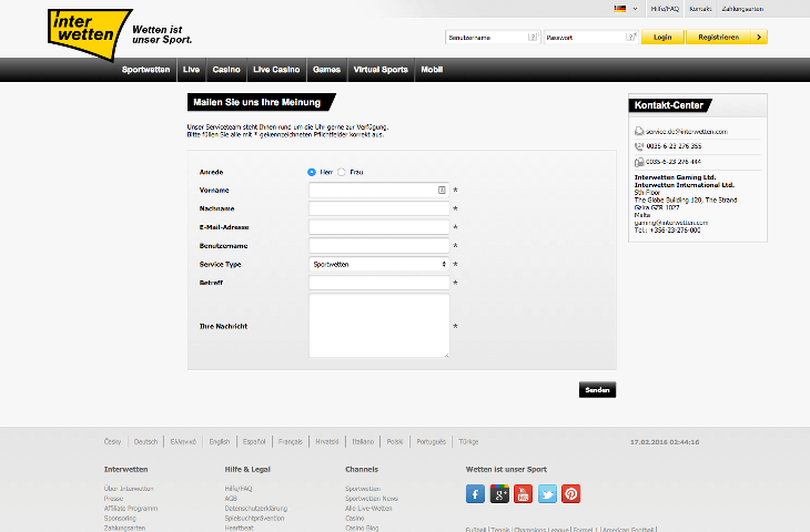 Kundenservice bei Interwetten